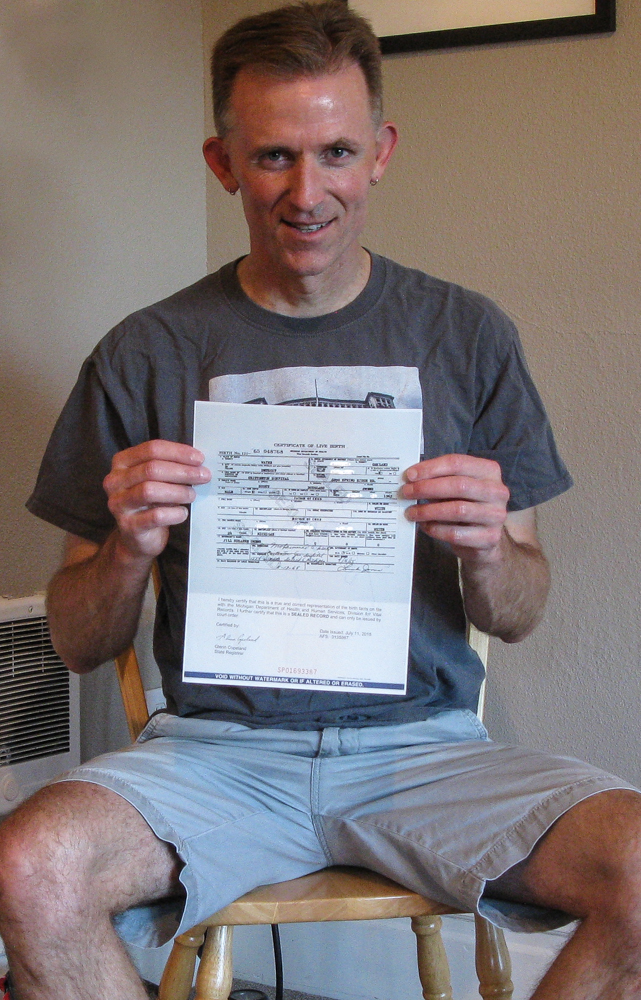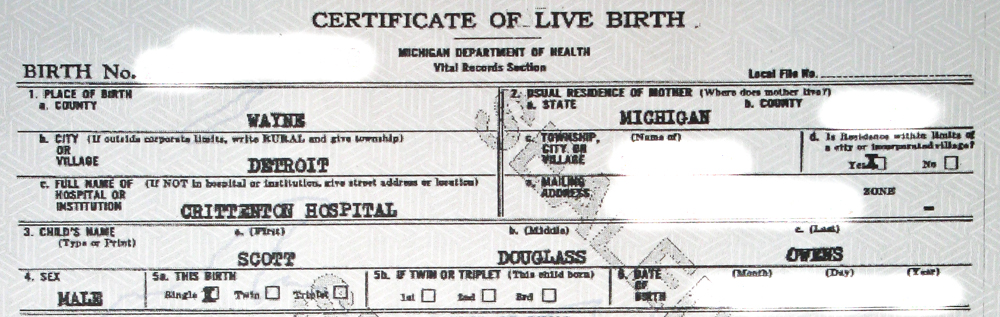 This is part of my original record of birth, showing my arrival in the world in Detroit, Michigan. It was then hidden from me for decades because I was born a bastard, who became an adoptee and thus denied equal treatment under the law by Michigan, its courts, and my adoption agency.