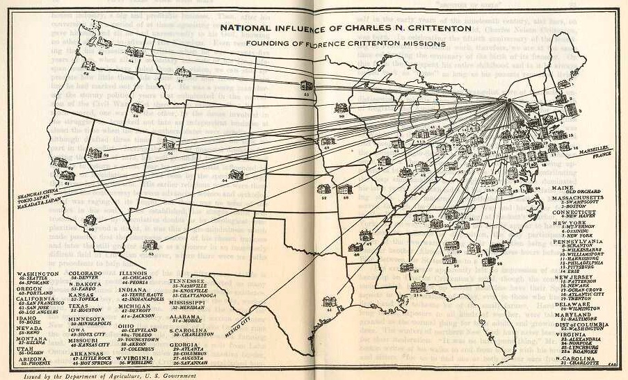 At its start, in 1883, Crittenton worked the streets and promoted the Christian gospel, specifically to combat prostitution and provide service to exploited women and girls. The organization’s 50-year summary notes, “In its beginning the objective of Florence Crittenton efforts was the redemption of the fallen woman, the street-walker, and the inmate of houses of prostitution. The great agency in such redemption was the simple one of religious conversion.”