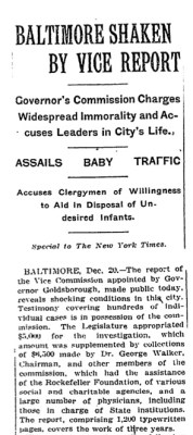 The New York Times covered the findings of the investigation of the horrific conditions that killed nearly four in five relinquished infants in Baltimore, in 1914.