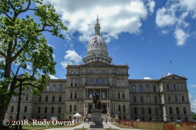Most of the passers-by were lobbyists talking on their phones, long oblivious to any political stunt and protester they have seen over the years in Lansing. Most never even made eye contact with me. A bill that would be approved later that day to end Michigan’s status as a “right to work” state also had drawn hundreds of trades people to the capital to protest the pending measure that they opposed. They were mostly big, burly, and very tough Michigan men and a few equally scrappy looking women, Wearing their union shirts and work gear, they did not seem to care who I was either. I got a few laughs too.