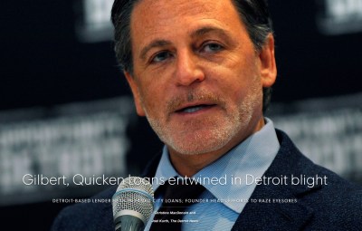 Billionaire Dan Gilbert, CEO of Quicken Loans and now Detroit real-estate mogul, also is partially blamed by the Detroit Free Press for exacerbating urban blight and the huge foreclosure crisis. Gilbert’s Quicken Loans was central to decay. Since 2000, Wayne County has held one of the world’s largest real estate auctions offering 20,000 properties a year acquired through foreclosure—5 percent of Detroit’s housing stock. The venerable New York Times in 2014 described the city’s plight as post-apocalyptic.