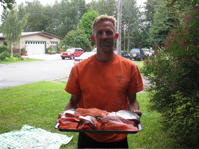 Dipnetting on the Kenai River, 2008.Rudy Owens and fresh caught Kenai River sockeye, 2010.